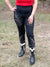 Our Black Washed Wide Waist Stretch Denim Jeans feature a flattering wide waistband and twill fabric for added durability and comfort. Western-inspired embroidery and gold studded details give these jeans a bold, elevated look. Dress them up with boots or keep it casual with sneakers for effortless style.