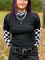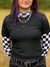 - Model (first 8 pics) is wearing a size large at 5’8” paired with our Black & White Mesh Checker Long Sleeve Top
