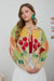 Our Taupe Farm Fresh Multi Veggie Pattern Neck Tie Knit Cardigan features a round neckline, drop shoulders, and long sleeves for an easy, relaxed fit. Designed with a colorful vegetable pattern and self tie neck detail, this knit cardigan is the perfect farmer’s market layer. Style it effortlessly over tanks or dresses for a cozy, laid back look.