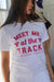 Introducing our Handmade Meet Me At The Track Tee: Saratoga Springs – an exclusive design featuring horse and jockey silhouettes. With a comfortable unisex fit, it’s perfect for casual days, race season, or any horse racing fan.