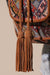 Introducing our Artisan Embellished Ethnic Backpack, a fusion of style and craftsmanship. Hand-beaded and embroidered with an ethnic motif, this backpack features suede binding, straps, and braided tassels for a touch of luxury. With a spacious interior and convenient front pocket, it's the perfect accessory to elevate any outfit.
