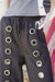 - Oversized metal grommet detailing