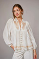 Our Chestnut Western Barn Embroidered Knit Sweater features detailed western inspired embroidery, along with a contrast collar and classic button placket. Finished with a color block knit, ribbed cuffs, and hem, it pairs effortlessly with denim or leather pants for an elevated western look.